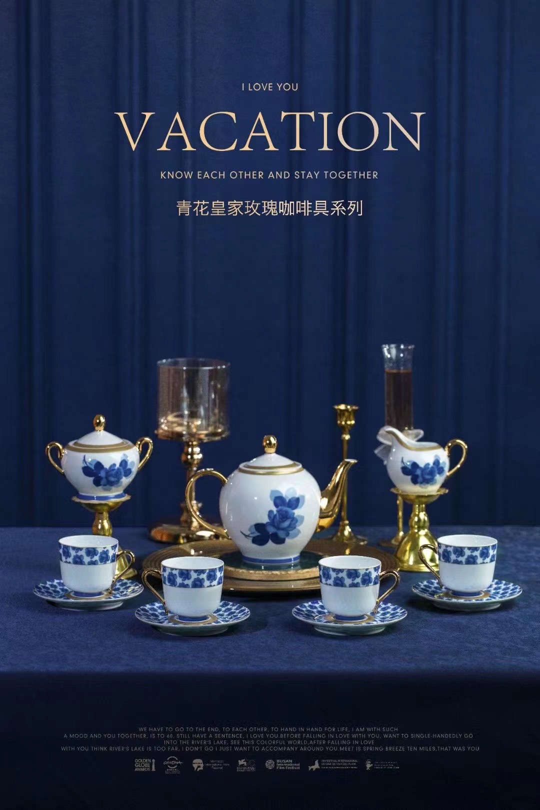 青花皇家玫瑰陶瓷咖啡具