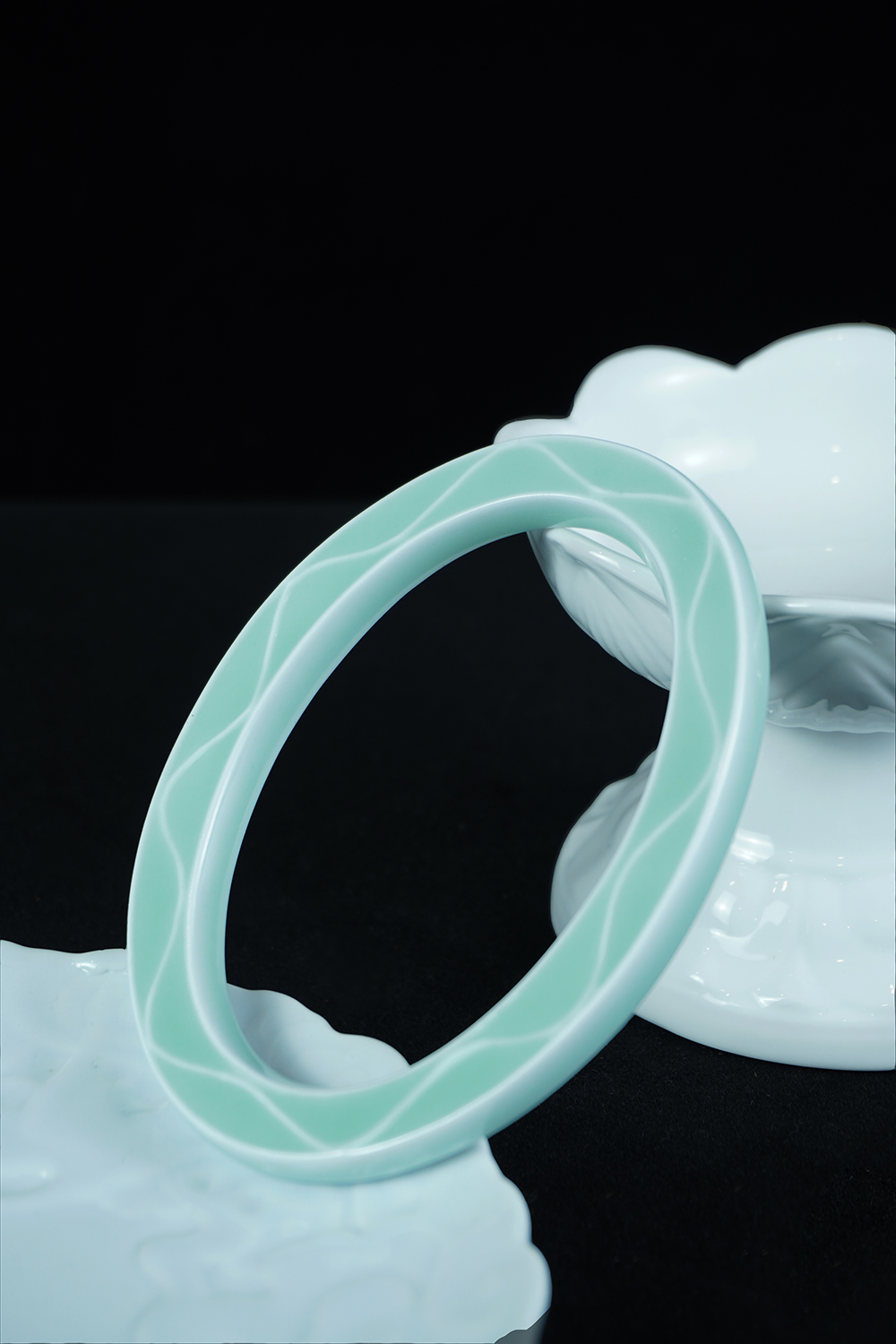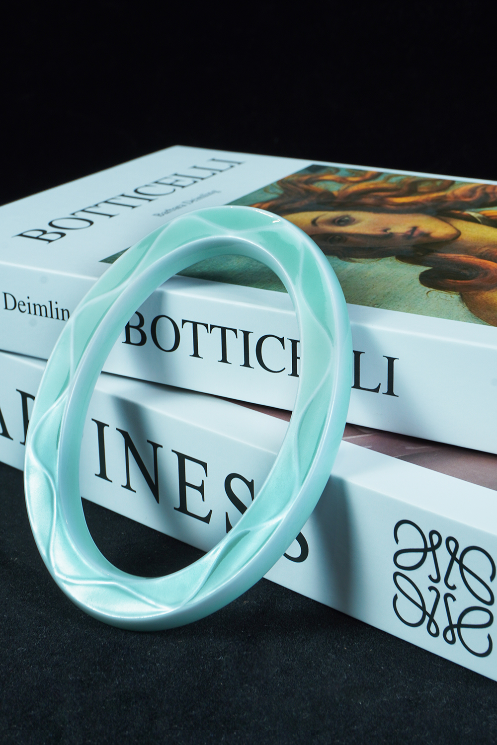 客戶定制 淺藍格楞紋陶瓷橢圓相框