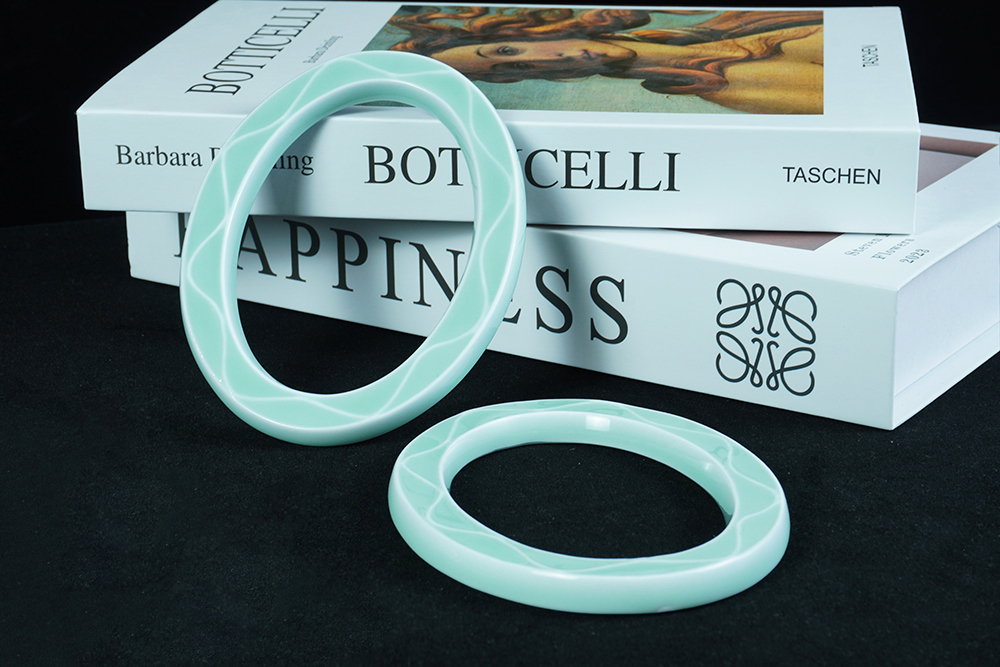 客戶定制 淺藍格楞紋陶瓷橢圓相框